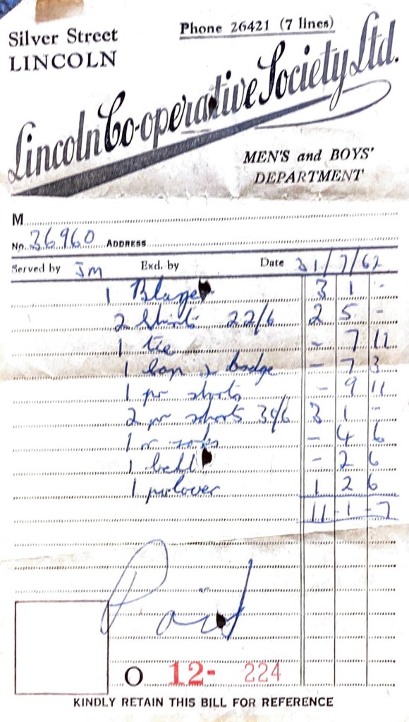 First up is: It is 1962, July, and I am at Branston at the house in Hillside Crescent. My “O” levels results were due to be published in a fortnight or so and just prior to that my parents had sent me on my hols to visit David and Edna and Cecil. Unknown to me, Edna must have kitted David out in his new uniform to start at this new school in September – North Hykeham, I think it was comprehensive then, but it might have been a grammar.